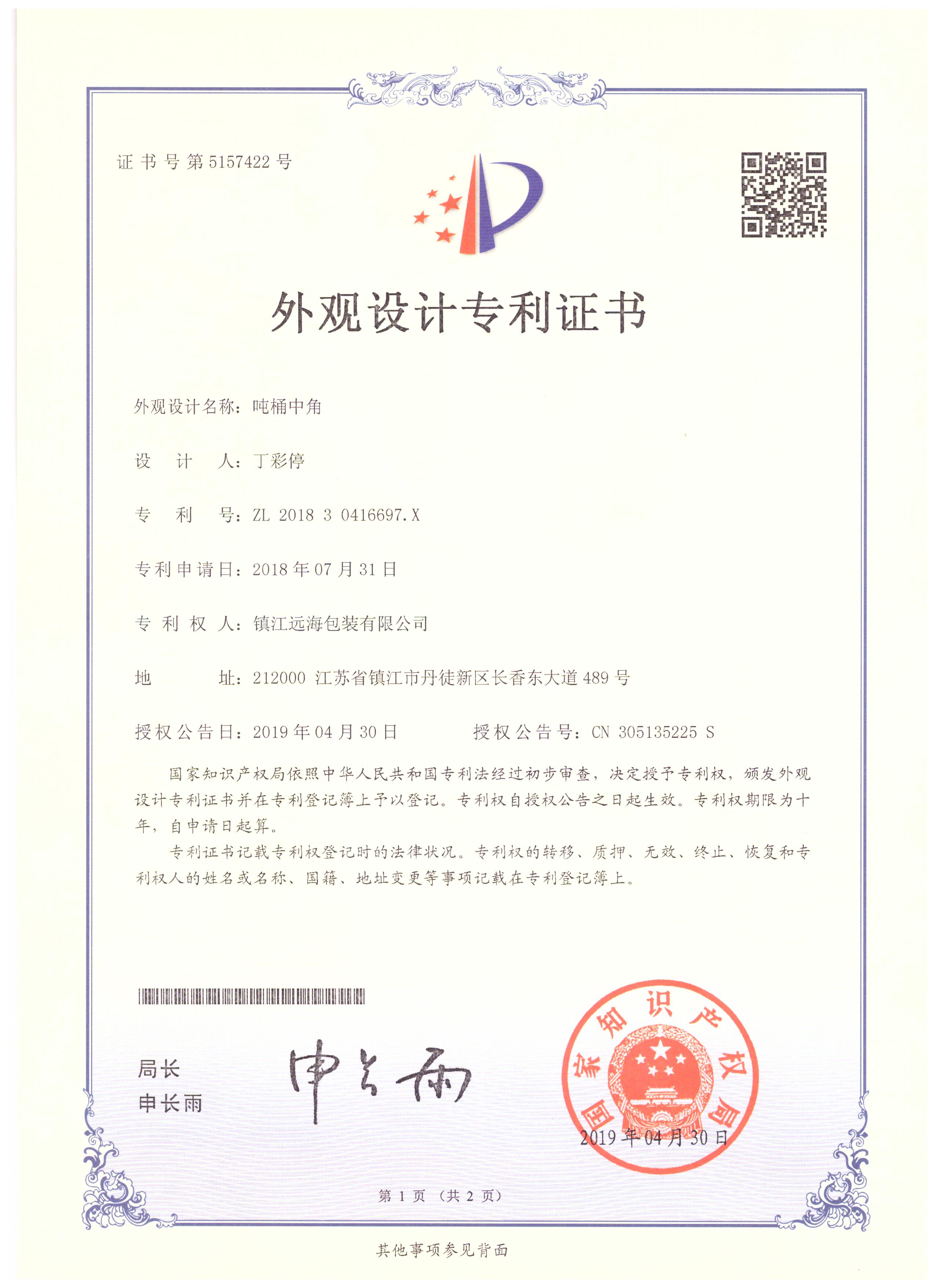 鎮(zhèn)江遠(yuǎn)海包裝有限公司成立于2014年8月,是一家專注于生產(chǎn)IBC噸桶及零配件的企業(yè),主要產(chǎn)品有各種型號的底板、橫梁、底角、標(biāo)牌、鍍鋅焊管等。公司擁有相關(guān)產(chǎn)品的外觀型和實用型8項專利。